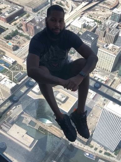 108-stories high in a glass box hanging off the tallest building in Chicago. I'm normally not afraid of heights but to walk out onto the ledge made me a little nervous. When I finally stepped on the glass platform the view was amazing & I cant lie, I barely looked down. Exciting and scary all at the same time. I saw that they have a glass slide in Cali on a tall building similar to this one so I will be trying it soon.