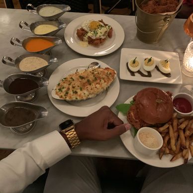So for this spot I had to bring in a foodie specialist, @foodielifemac to help me make sure I wasn't crazy, because yeahhhh this place was beyond good. We ordered the whole chicken which comes in 10 sections, & all the sauces just to try them out. The honey pepper, mustard, & blue cheese tasted the best. The chicken has a nice crunch to it not to over cooked & not to under cooked. I couldn't get enough of the chicken with the honey pepper sauce. The deviled eggs sat in a black truffle sauce which was very good, like really good seriously. The chicken sandwich we both agreed was the best out of everything we tasted. It was super soft yet crunchy & had the right amount of seasoning. I didn’t care for the chicken with the sunny side up egg on top, but @foodielifemac said it was a go for him. The cauliflower gratin we both agreed was ok nothing special. The French Champagne, Methode Ancestrale Rose went perfect with the whole meal. The only thing I could say that would make this place better is if they stayed open a little later, other than that the food is awesome ! Thank you @Barpoulet for the shout out and post as well !