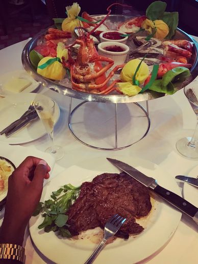 Cold Shellfish platter, 22oz Bone-In Ribeye, Lobster Mac 'N' cheese & grilled Asparagus with lemon mosto. I couldn't eat it all but I tasted as much as my stomach allowed and I wasn't disappointed, at all !