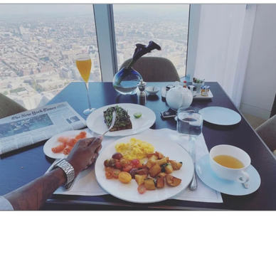The best part about this restaurant to me is not the food, but the fact that the restaurant is located at the top of the tallest building in Philadelphia, the Comcast building. Not only is it the tallest building in Philly it also has a Four Seasons hotel inside as well. When you enter the building you will be surrounded by wall to wall luxury and the elevator ride to the restaurant is far from boring. The elevator is glass and overlooks the city as you ride up so if your afraid of heights this is your warning. As you entered the restaurant the first thing you will notice is its massive windows and 360 views of the city. Now on to the food.... Herb potatoes & cherry tomatoes , smoked salmon, avocado toast, tea & a mimosa. The food looked better than it actually taste and was not worth the price in my opinion. The view and mimosa was good though.
